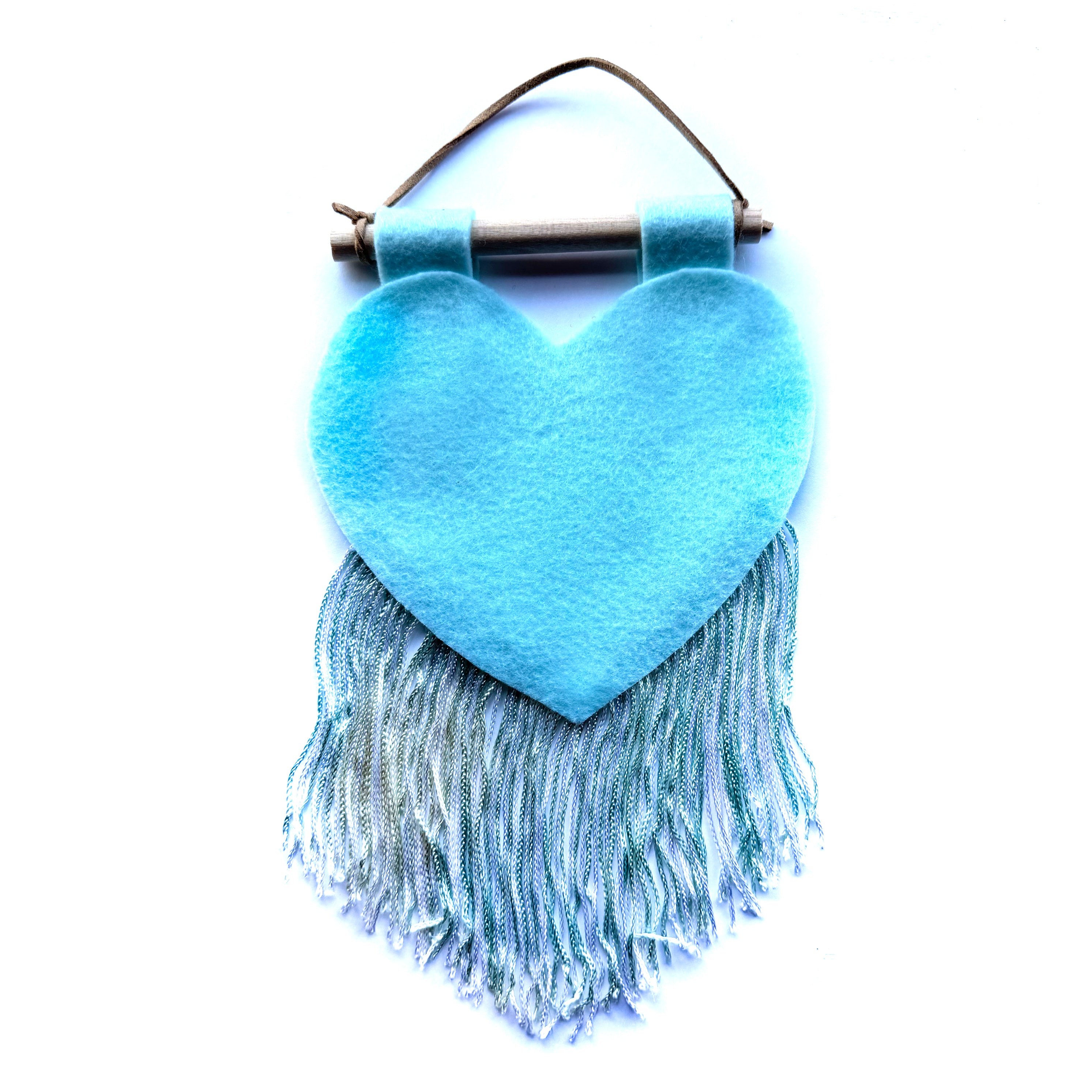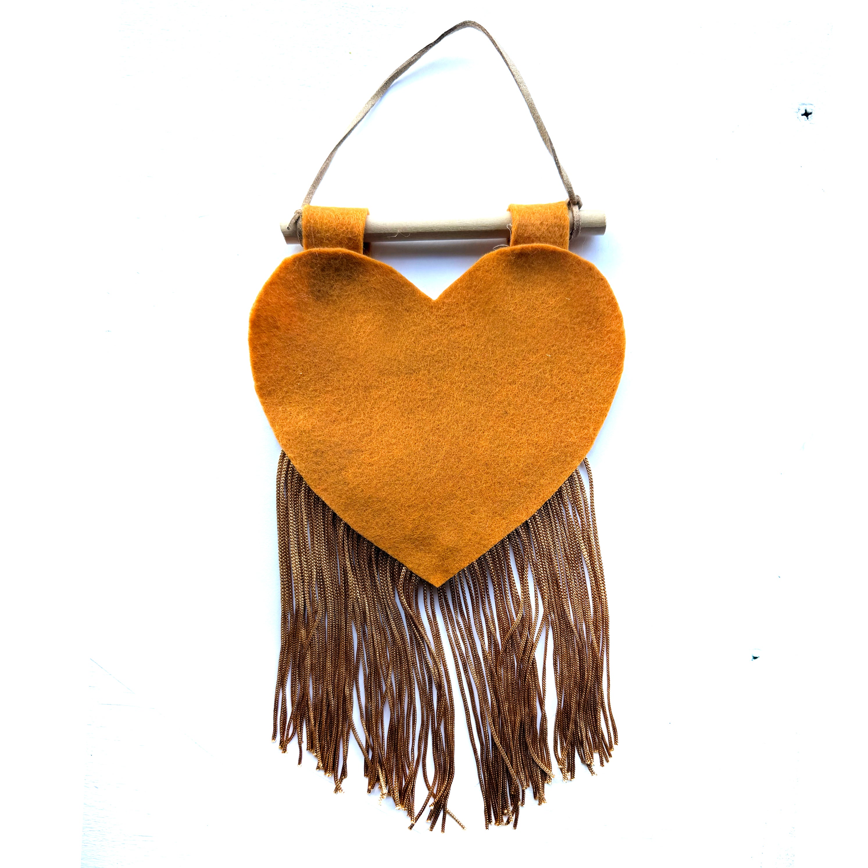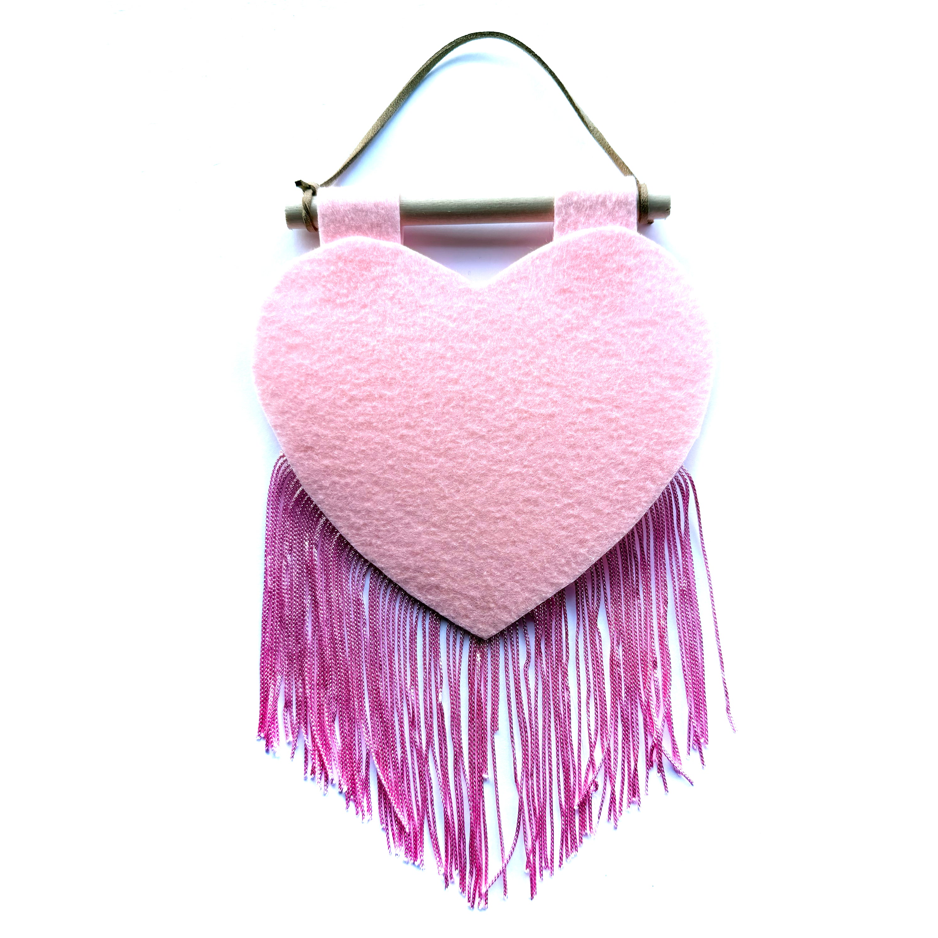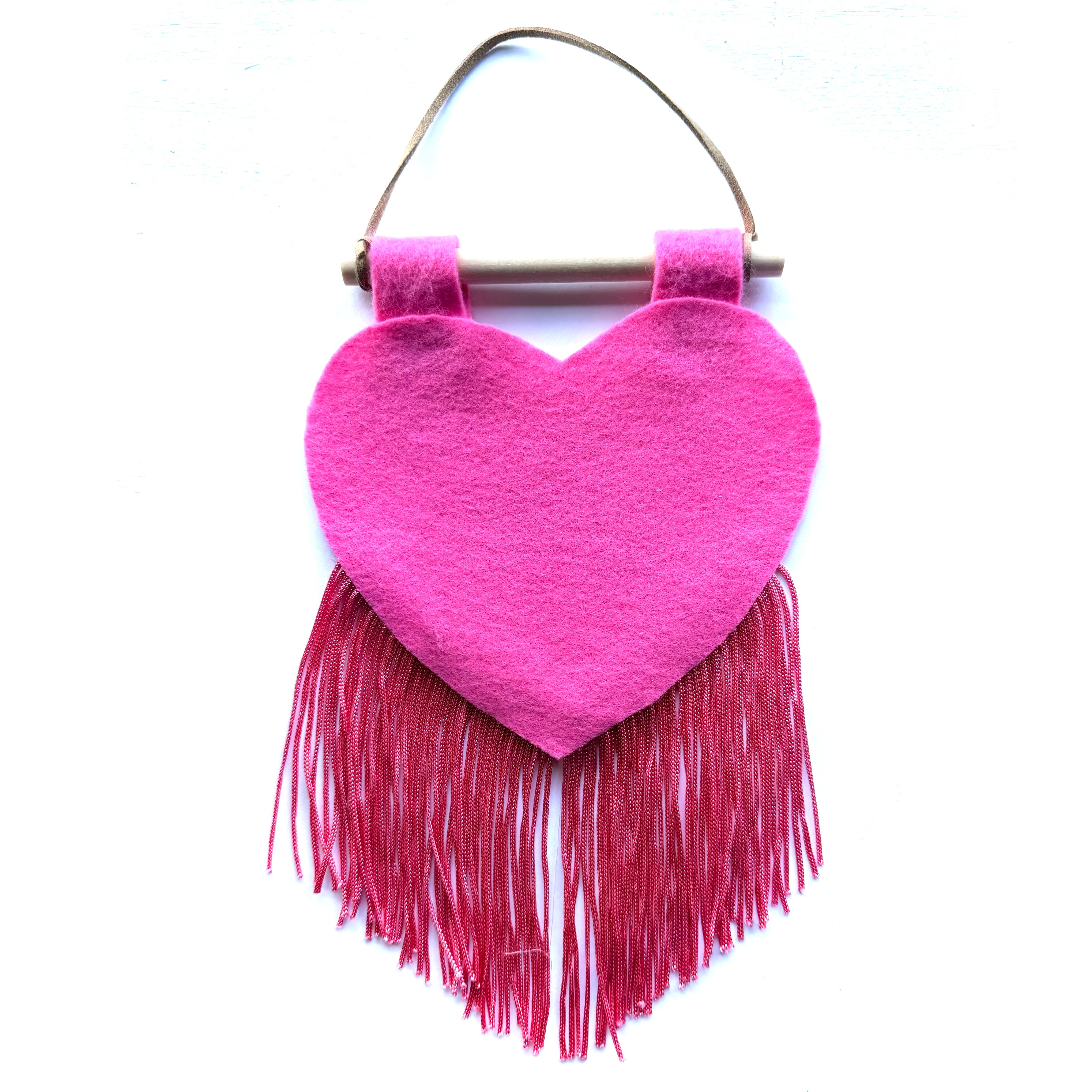 Customizable heart banner that measures around 5x10". They are hand cut-and-sewn out of felt and fringe in-house.
